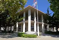This third courthouse in Hollister served until 1961, when it was damaged in an earthquake.[6][7] A new courthouse was built in 1963.[8] By 2006, the 1963 building was noted to have "extremely poor security, is functionally deficient, and is among the worst in the state in terms of physical condition", described as "outdated and undersized".[9]: 5 The present courthouse was completed in 2014 and occupied in March of that year.[10][11]