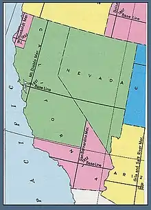 - "Nevada in Maps: Plats of Nevada State Lands". University of Nevada, Reno. Archived from the original (Background and maps of the San Bernardino and Mt. Diablo meridians) on 2012-10-18. Retrieved 2012-10-06.