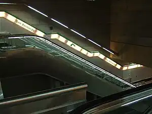 San Bernardo (English: Saint Bernard) is a railway interchange station of metro and suburban trains services of Seville, Andalusia. It is located at the intersection of the avenues of La Enramadilla and La Buhaira in the neighborhood of San Bernardo. San Bernardo is an underground station of line 1 of the metro[1] and the lines C-1 and C-4 of the suburban trains (Spanish: Cercanías). The suburban station was opened to the public in 1992[2] while the metro station was inaugurated on 2 April 2009, and opened on 15 April 2011. It is also a terminus for the Metrocentro tram line.