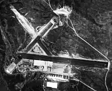 San Clemente Naval Auxiliary Air Station is a closed airfield located near the center of the San Clemente Island, California. Also called San Clemente Airfield, the airfield was built in 1934 with two 1,600-foot dirt runways. San Clemente Island is owned and operated by the United States Navy since November 7, 1934. The Works Progress Administration and a civilian contractor improved the airfield in 1938. The two runways were rebuilt to paved at 3,000-feet and 2,000 feet long by the WPA. The WPA also built a new hangar at the base. The airfield became a US Marines training base with the start of World War 2. A Marines squadron was station at Airfield and began air scouting training in 1942. The Marines trained in 19 Vought SB2U Vindicator carcraft and a one Grumman J2F Duck seaplane. The US Army installed two radar stations nearby and the runways were improved in 1941, the 3,000-foot runway was made into a 5,000-foot runway. In 1943 the airfield was renamed Naval Auxiliary Air Facility San Clemente Island. The Airfield supported bomb testing, radar training, Naval fighter gunnery training, and electronic countermeasures on the Island during the war. Over the years the size and scope of the airfield deduced, by 1977 the 2,000-foot runways was removed, and the east/west 5,000-foot runway was used rarely and closed at times. The deduced airfield was sometimes used for training in amphibious and air assault operational, also UAV operations. Today the runways as two helipads on the old runway. Naval Auxiliary Landing Field San Clemente Island became the main active Airfield. [1][2][3]