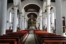 The San Francisco Church was built by the Franciscans in 1577 as a monastery but only the church survives. The current church was built in the 18th century with a single nave covered in a wood and tile roof. The main facade has three levels and two side towers.[7] Inside, it has six Baroque altarpieces. The upper part of the nave has fourteen oil paintings. The atrium has a sculpted stone baptismal font.[5]