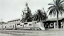 Construction of the Surf Line between Los Angeles and San Diego began on October 12, 1880, with the organization of the California Southern Railroad Company. On January 2, 1882, the California Southern commenced passenger and freight service between National City and Fallbrook Junction, just north of Oceanside.[1] The Santa Fe assumed control of the California Southern and on August 12, 1888, completed the line between Los Angeles and San Diego. Initially known as the "Short Line", the route replaced the Santa Fe's existing circuitous route via Temecula Canyon.[2] In the 1930s the Surf Line hosted four round-trips per day, with an average trip time of 3+1⁄2 hours.[3]
