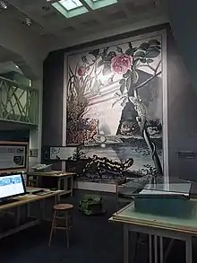 Library collections include a complete natural history reference library, the rare book collection, the Klauber Herpetology Library, and the map collection. In addition, the Library's art collection includes treasures such as the botanical watercolors of A. R. Valentien and wildlife paintings by George Miksch Sutton and Allan Brooks. The Library's archives include a large collection of historical photographs and many important field notes collections, such as those of herpetologist Laurence Klauber (available online at the Internet Archive),[70] mammalogists Frank Stephens and Laurence M. Huey (available at the Internet Archive),[71] and naturalist Charles Russell Orcutt.[72] The library director curates the Museum's permanent exhibition Extraordinary Ideas from Ordinary People: A History of Citizen Science, which draws from the rich resources of the library's varied collections.[73]