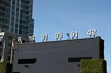 - Jackie Robinson's number was unveiled on July 3, while those of Dave Winfield, Randy Jones and Steve Garvey were unveiled on August 20.[35]