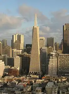 The Transamerica Pyramid is one of the tallest skyscrapers on the San Francisco skyline and one of its most iconic. Although the building no longer houses the headquarters of the Transamerica Corporation, it is still strongly associated with the company and is depicted in the company's logo. Designed by architect William Pereira and built by Hathaway Dinwiddie Construction Company, at 260 m (850 ft), upon completion in 1972 it was among the five tallest buildings in the world.[31]