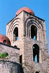 The church is notable for its brilliant red domes, which show clearly the persistence of Arab influences in Sicily at the time of its reconstruction in the 12th century, the Arab-Norman culture.[3] In her 1882 Diary of an Idle Woman in Sicily, Frances Elliot described it as "... totally oriental... it would fit well in Baghdad or Damascus".[4] However, the red color of the domes are not original, as they were painted in this color by Patricolo who found pieces of red plaster on the domes and therefore decided to paint all the domes in red.