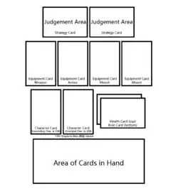 - Equipment cards 装备牌 - These cards are placed in front of the player and serve to modify distance and range calculations, as well as contribute to attack or defense attributes.