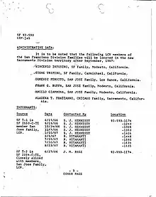 Joseph Cerrito took over the crime family after the death of Sciortino.[2] Cerrito emigrated to the United States from Palermo, Sicily in the late 1920s and eventually settled in San Jose in the early 1940s. He owned three car dealerships in the San Jose area. Cerrito gained some popularity for being caught at the 1957 mob meeting in Apalachin, New York. In 1964, he was spotted meeting Bonanno crime family former underboss Frank Garofalo at a hotel in Palermo, Sicily. Many believe they were discussing the war within the Bonanno Family. Life Magazine listed Cerrito as the Mafia boss of San Jose in 1968. Angry over the accusation, he sued the company for libel. But the case was later thrown out of court. Cerrito died in 1978 from natural causes.