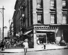 African-Americans moved into the area around the late 19th century from Little Africa in Greenwich Village, where an earlier African-American community existed.[3][4] Before the construction of Lincoln Center and the subsequent destruction of San Juan Hill, jazz and art thrived in this area as its popularity began to grow. The neighborhood had a jazz club called "Jungle Cafe" nicknamed the jungle by the members of the neighborhood. This term was used by Mezz Mezzrow, a white jazz clarinetist. Mezzrow was introduced to jazz while living in Harlem, where he heard recordings of James P. Johnson, the pianist from San Juan Hill in which he said "Here’s a boy from the Jungles who makes all the other piano players look sick!”[5] Moreover, this basement club was where the Charleston dance was reputedly born and got its start. The area's musical history continues today at Jazz at Lincoln Center.[6] Historian Marcy S. Sacks writes that San Juan Hill had many tenement basement clubs ranging from dives to higher-level clubs. And that there were also poolrooms, saloons, dance halls, and bordellos.[7]
