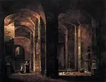 Further transformations were executed in the 17th century by Filippo Gagliardi. In the mid-17th century a series of frescoes, architectural additions, and altarpieces were commissioned including series landscape and architectural frescoes of typically biblical scenes by Gaspar Dughet and Galgliardi.