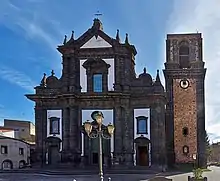 The architect of the 16th-century facade was Andrea Calamech. The elements are clearly defined using dark lava stone. The campanile, still incomplete, was built in 1783.[1]
