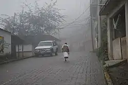 One central component of religious life here revolves around shamans, locally called badi. These act as mediators between humans and higher beings. Rituals performed by shamans are meant to create communication with these beings and can be for the benefit of the community as a whole or for an individual.[19] This shamanism has given the Otomi, especially in San Pablito, a reputation for magic and sorcery among their neighbors.[20] These rituals have traditionally been related to agriculture among other things, but as the economy has shifted, most rituals relate to health as well as protection and cleansing, especially of those heading to and from the United States.[21] Traditional medicine consists of two types of sicknesses, “good” and “bad,” with the first being cured with herbs or modern medicine. The second is considered to be spiritual in nature and cured by shamanic rituals to get rid of bad spirits and/or create harmony between the sick person and the universe.[19] San Pablito's best known shaman is Alfonso Garcia.[5]