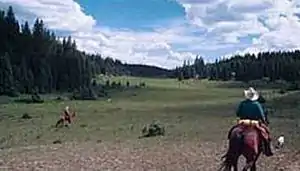 Of all the trails in San Pedro Parks the Vacas trail is the most popular. Starting at the San Gregorio Trailhead, the Vacas trail is 10.69 miles to San Pedro Park, which is the largest "park" in the Santa Fe National Forest wilderness.[13] The elevation at the San Gregorio Trailhead is approximately 9,000 ft, with the climb up to San Pedro Park being gradual.[14] Along this trail there are several parks that appear as breaks from the primarily spruce vegetation.