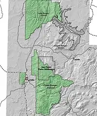 The San Pedro Parks Wilderness is located in southern Rio Arriba County in northern New Mexico and part of the Santa Fe National Forest. It is 41,132 acres (16,646 ha) (64 sq miles) in size. Elevations range from 8,300 feet (2,500 m) in the southwestern corner to 10,592 feet (3,228 m) at San Pedro Peaks near the center of the Wilderness.[1] The Wilderness's average elevation is over 10,000 ft.[2] Conifer forests, interspaced with grassy meadows, called "parks," characterize the wilderness. San Pedro Parks Wilderness is primarily visited for hiking, camping, hunting, and fishing. The Continental Divide Trail passes through the Wilderness.