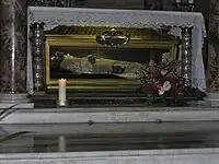 Elizabeth Sanna was born April 23, 1788, in Condrongianos, Sardinia to a family of farmers. At the age of three months she contracted smallpox, which left her with her slightly crippled. She was married in 1807 at the age of nineteen. She and her husband, Antonio, had seven children, two of whom died young. In 1825 Antonio died, leaving her a widow with five children between the ages of three and seventeen. In 1830 she made a pilgrimage to Rome, where she met Vincent Pallotti. She became a secular Franciscan tertiary and later, one of the first members of the Catholic Union of St. Vincent Pallotti. She died in Rome on February 17, 1857, and is buried in the church of SS. Salvatore in Onda.[6] On January 27, 2014 Pope Francis declared Elizabeth Sanna venerable.[7]