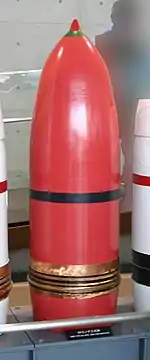 The 41 cm (16.1 in) round contained 1,200 incendiary tubes and on explosion burst into 2,527 fragments. By contrast a 46 cm round burst into 2,846 fragments.