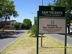 Named in honor of the 14th century Dominican friar Saint Vincent Ferrer, the site was first settled as an Indian Reduction in 1618 by Spanish conquistadores and was initially known as Laguna de la Reducción. Luis Pessoa y Figueroa, a landowner from Magdalena and member of the Buenos Aires Cabildo, bought much of the land south of the San Vicente Lagoon (then known as Laguna del Ojo) in 1696, and his son, Juan Bautista Pessoa, established a small settlement in 1734. A fort, Fortín El Zajón, was built here by the Blandengues cavalry corps in 1750. Luis Pessoa's grandson, Friar Vicente Pessoa, established the area's first Catholic parish in 1781 and on 30 December 1784, the county of Magdalena was formally divided into among two other towns, San Vicente.[1]