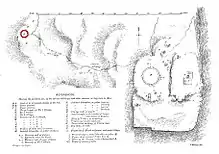 The Stupa is located outside of the main complex of Sanchi, about 300 meters to the west, on the slope of Sanchi hill.[4] It is located in a lower position than Stupa 1 because the relics it contained, are those of church dignitaries from the time of Ashoka, who were considered as worthy of a lower position than the Buddha himself in Stupa number 1, or his disciples in Stupa number 3.[4]
