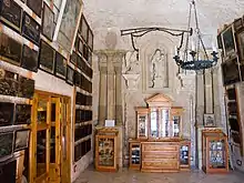 The sacristy and a tunnel leading to the church contain many ex-voto paintings and other offerings.[2][9] A notable example is a painting depicting a Venetian ship and an icon of the Virgin Mary and Jesus which might have originated from the Kykkos Monastery in Cyprus. This might have been brought to Malta after the fall of Cyprus to the Ottomans in 1571.[2]