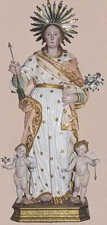 In 1806, the Cardinal of Naples Luigi Ruffo-Scilla gave the Sanctuary the first statue dedicated to the saint.[6] On August 10, 1835, the miracle of the healing of Pauline Jaricot, founder of the Work of the Propagation of the Faith, took place in the Sanctuary. Pope Gregory XVI witnessed that miracle, who decided to give public worship to Saint Philomena on January 30, 1837.[7]