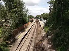 In 1928 the Southern Heights Light Railway was approved, which would have left the Oxted line south east of the station and finished at Orpington.[4] On it would have run a loop service from Charing Cross to Lewisham and then Woodside-Sanderstead-Orpington and back, or vice versa. However, the scheme could not attract investment and was moribund even before electrification of the Woodside and South Croydon Joint Railway as its first stage. This was from Woodside to Selsdon and over a short section of the Oxted Line to Sanderstead, and was completed in 1935.[5] This route terminating at Sanderstead involved the only electric train service at the station until 1984.