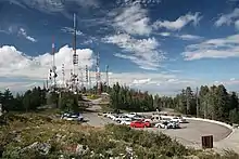 Sandia Crest is a long ridgeline at the highpoint of the Sandia Mountains. The Crest is heavily forested, mostly with spruce and fir. There are communication radio antennae of various radio and television stations situated at the top.