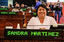 Sandra Yanira Martínez Tobar (born 1959, San Salvador) is a Salvadoran pioneer in the field of meteorology, being the first woman to work in the National Meteorological Service later known as the Environmental Observatory of the Ministry of Environment and Natural Resources, from where she retired in 2019.[1] During the legislative and municipal elections on February 28, 2021, she was elected deputy of the Legislative Assembly of El Salvador for La Libertad Department during the period from May 1, 2021 to May 1, 2024.