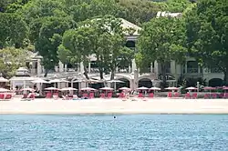 Sandy Lane is a luxury five-star[2][3][4] beachfront resort close to Holetown and Paynes Bay on the island of Barbados.[5] Sandy Lane was opened in 1961 by Ronald Tree, a former British politician, as a luxury hotel and golf course on what had been a sugar plantation.[6] In 1998, the hotel was put up for sale by Granada plc, and five Irish businessmen, including J. P. McManus, Dermot Desmond and John Magnier, bought it. The original resort was then demolished in a three-year, $450 million upgrade and renovation.[6][7]