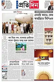 Sangbad Pratidin (lit.: news every day) is a daily Indian Bengali newspaper simultaneously published from Kolkata, Barjora and Siliguri. It was founded by Swapan Sadhan Bose, the owner and also All India Trinamool Congress representative at the Rajya Sabha, on 9 August 1992.[2][3] The Editor-in-Chief is Srinjoy Bose.