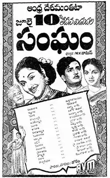 Sangham (transl. Society) is a 1954 Indian Telugu-language romantic comedy film, produced by M. Murugan, M. Saravanan and M. Kumaran of AVM Productions and directed by M. V. Raman. It stars Vyjayanthimala, Anjali Devi, N. T. Rama Rao and S. Balachander, with music composed by R. Sudarsanam.