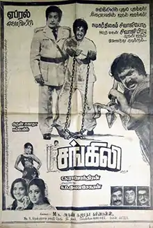 Sangili (transl. Chain) is a 1982 Indian Tamil-language action drama film, directed by C. V. Rajendran and produced by S. D. Gunasekaran. The film stars Sivaji Ganesan, Prabhu (in his debut film appearance), Sripriya, Major Sundarrajan, Sumithra and M. N. Nambiar.[1] It is a remake of the 1976 Hindi film Kalicharan.[2] The film was released on 14 April 1982.[3]