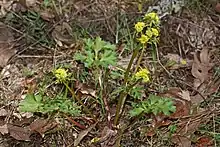 Sanicula graveolens is a species of flowering plant in the family Apiaceae known by the common names northern sanicle and Sierra blacksnakeroot. It is native to western North America from British Columbia to Montana to California, and southern South America, including southern Chile. Its habitat includes mountain slopes, forests, and woodlands on serpentine soils. It is a perennial herb producing a slender, branching stem up to half a meter tall from a taproot, with leaves alternate. The lowest leaves have long stalks and are often attached below ground. The upper leaves are smaller, sparse and often sessile. The leaves are compound, the blades each divided into three deeply lobed, toothed leaflets. The herbage is green to purple-tinged to all purple in color. The inflorescence is made up of one or more heads of bisexual and male-only flowers with tiny, curving, yellow petals. Each head has an array of narrow, toothed bracts at its base. The rounded fruits are a few millimeters long, covered in curving prickles, and borne in small clusters.