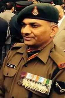 ![]() Then-Havildar Sanjay Kumar, wearing his PVC medal | |