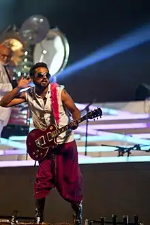 Sanjeev T (born as Sanjeev Philip Thomas on September 8, 1980) is an Indian music producer, composer, singer, guitarist, and performer.[1][2] Sanjeev’s music is an amalgamation of indie, rock, reggae, fusion, and jazz sounds. Currently, he is an independent music producer and also the founder and chief mentor at Rainbow Bridge, a music school and production studio in Bangalore.[3] He is most known for his work as a lead guitarist with A.R. Rahman (2005 – 2015) and played for movies like Rockstar, Delhi-6, Vinnaithandi Varuvaya, Jaane Tu Ya Jaane Na, Blue, Endhiran and more. He also worked with Bollywood music directors Pritam and Anu Malik[4] and other Indian music directors like Shaan Rahman, Ghibran and Leon James. He has also composed music for two Malayalam movies, Vilakkumaram (2017) and Manoharam (2019).[5][6] Apart from his work in the movie industry, he has officially released three albums, Freewill (2012), Epic Shit (2013) and St. (2018)[7][8] with the fourth album, Future, scheduled for release by 2021. Four singles from his next album, Future, have already been released.[9][10][11][12][13]