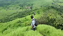 There are no Bastions or Gate on the fort. But there are plenty of rock cut cisterns on the fort and a small cave. Climbing the fort is through rugged, rough rocky boulders.[2] The Badruddin Darga at the base of the fort is worth visiting. There is a water cistern called Gajishah tank on the way to the top.[3] From the top of this fort many forts like Karnala, Manikgad and Sagargad are seen.