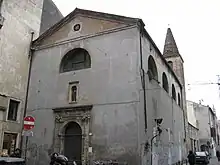 A church was present here by the 12th century, but the present structure, except for the still standing Romanesque bell-tower, with a steep conical roof, was erected starting in 1362. The facade is from the 16th century. The portico and adjacent vicariate was removed in the 20th-century. The Renaissance portal is still in place was complete by Giovanni Maria Mosca.[1]