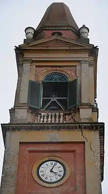 The Church of Sant'Agostino Parish is a Roman Catholic parish church in the frazione of Sant'Agostino, part of the comune (municipality) of Terre del Reno in the Province of Ferrara, Italy. The original church built in 1507 by commission from the Bianchetti family. By 1566, the church had its first reconstruction, and in 1626, the belltower was added; this was reconstructed in 1823. Just prior to becoming a parish church, the site had been part of the Oratorio dei Sacchi. In 1791-1792, the lateral naves were added and the nave elongated. The present Neoclassic facade dates to 1879.