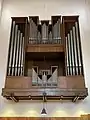 There have been four pipe organs in the church since its founding. The first organ (built by William Trice in 1891) was installed in 1896. It would later be moved to the present location in the Chapel of St. Lawrence located in the Basilica of Saint Paul Outside the Walls. The second organ (built by Klais Orgelbau of Bonn) had been installed in 1911 in the left side aisle. It would later be moved to the present location in the Basilica of Regina degli Apostoli alla Montagnola. In 1952 the third organ (built by Emanuel Kemper of Lübeck) was installed in the central apse when the altar was moved under the arch. In 1966 a further renovation moved the organ from the apse and replaced it with a Celebrant's chair and an area for the concelebrants.[10] This third organ would later be moved to the present location in the Church of San Martino in Campo (Perugia). The present organ by Österreichische Orgelbau was installed in 1967 and renovated by Ditta Mascioni in 1999. It is located on the eastern wall transept above the monastic choir.[11]
