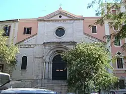 In 1928 the church and its surroundings were acquired by the Holy See, which assigned the church to Russian Catholics of the Byzantine Rite and the surrounding buildings to the Collegium Russicum, a centre for Russian and oriental studies. The church's facade is by Antonio Muñoz and incorporates a Romanesque gateway, the only survival from the hospital,[3] and an inscription above it recording the hospital's foundation by Cardinal Capocci.