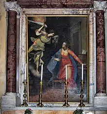 - The Chapel of the Annunciation : its decoration was finished in 1874. Above the 17th-century altar stand two columns of coralline breccia that support a broken pediment with a bass-relief in stucco representing the Virgin and Child. The altarpiece by Ottavio Leoni (or Lioni) (1578–1630) represents the Annunciation.