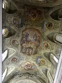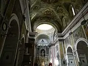 In the 19th century, the reconstruction added frescoes in the arches of the nave and ceiling, depicting Stories of the Virgin (1851) and Redemption of Captives (1852) by G. Gravante. In the transept are two canvases by unknown 16th-century artists.