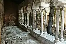 The Gothic-style church, built between the 14th and 16th centuries, serves as parish church. It has a late Romanesque cloister which was partially destroyed in 1877. Annexed to the cloister is an ancient abbey house with large patio windows and Gothic arches. The tombs of the nobles who were buried in the monastery were desecrated and plundered; little remains of them.