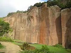 The area of Santa Bárbara consists of geological basaltic stone and escoria, transformed by pressures and weathering. In the region of Arrebentão is a former quarry pit, where these deposits were excavated and sold, explaining the vertical slopes of the quarry. From its geological record and level of alteration, the pyroclasts are consolidated and took on the red-tinged colour, giving the name of the site: Pico Vermelho.