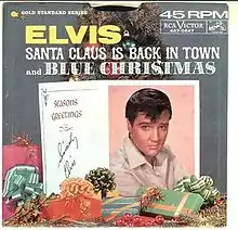 "Santa Claus Is Back in Town" backed with "Blue Christmas" was released by RCA Victor as a 45 single in 1965 in the US, reaching #4 on the Billboard Christmas Singles chart. The "Blue Christmas"/"Santa Claus is Back in Town" single was certified Platinum by the RIAA in 1999.[2]
