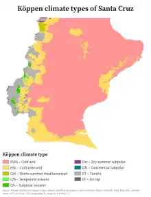 - "Provincia de Santa Cruz–Clima Y Metéorologia" (in Spanish). Secretaria de Mineria de la Nacion (Argentina). Archived from the original on April 16, 2015. Retrieved June 17, 2014.