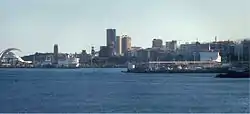 Santa Cruz is located in the northeast quadrant of Tenerife, 210 kilometres (130 mi) off the north-western coast of Africa within the Atlantic Ocean. The distance to the nearest point of mainland Spain is 1,300 kilometres (810 mi). Between the 1833 territorial division of Spain and 1927, Santa Cruz de Tenerife was the sole capital of the Canary Islands, until 1927 when a decree ordered that the capital of the Canary Islands be shared, as it remains at present.[7][8] The port is of great importance and is the communications hub between Europe, Africa and Americas, with cruise ships arriving from many nations. The city is the focus for domestic and inter-island communications in the Canary Islands.[9]