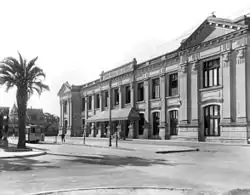 ![]() Santa Fe station building and a tram running on Gálvez Boulevard, c. 1940. | |