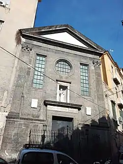 The church was founded in 1573-75 by the Fabrizio Pignatelli, brother of the second duke of Monteleone, knight of the Priory of Jerusalem (Gerosolimitani or Knights Hospitaller), and former Bailiff of Santa Eufemia in Calabria. As a knight or leader of knights, Pignatelli had fought in the defense of the Siege of Rhodes (1522), Tripoli (1544)(see Siege of Tripoli (1551), and Siege of Malta (1565).[1] The church was constructed adjacent the Hospital of "Santissima Trinità dei Pellegrini". Upon the death of the patron, the church was then ceded to Archiconfraternity which already ran the hospital.