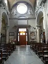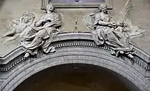 The first monument as you enter the basilica is the wall tomb of Maria Eleonora I Boncompagni, the sovereign Princess of Piombino right by the door on the counterfaçade. The princess died in 1745 after visiting a hospital. Her tomb was designed by Domenico Gregorini in 1749.[40]