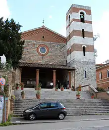 A church, convent and hospital stood at the site since the 13th-century,[1] but the convent of Clarissan nuns was destroyed during one of the sieges of Siena during the years 1554–1559. The nuns had relocated into the city to the Convent of the Umiliati; the republic of Siena had converted the convent into a fort before the forces of Cosimo I de Medici destroyed it.[2] The church, dedicated to Saint Petronilla. That small church fell into ruin, and was finally razed in 1895.